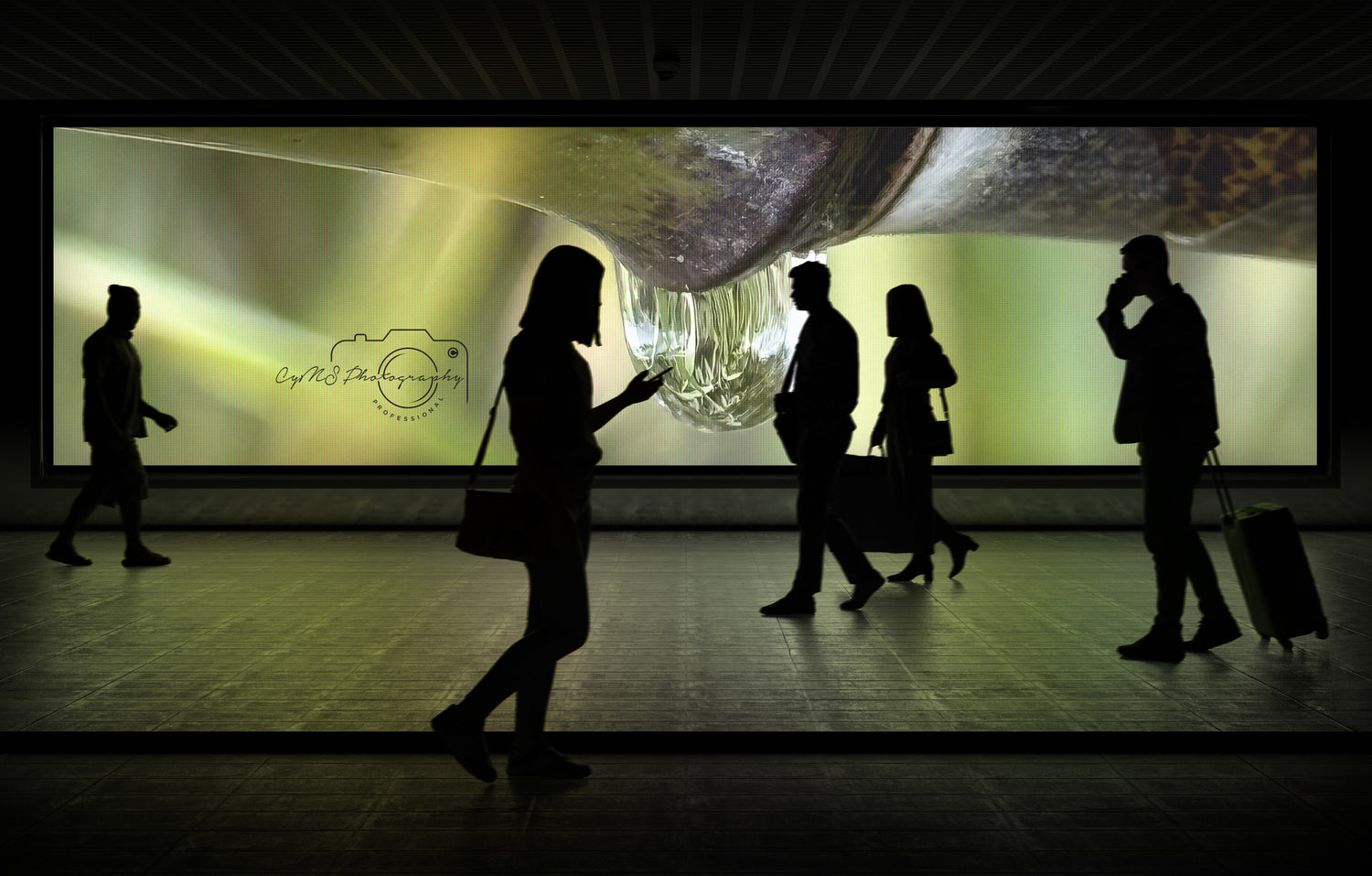 "In this waiting room, a beautiful picture frame features a stunning sunrise captured in front of a water fountain. The fountain reflects the sun behind it, creating a mesmerizing effect. This breathtaking image can be purchased in the 'The Symphony of Sunrises' section."