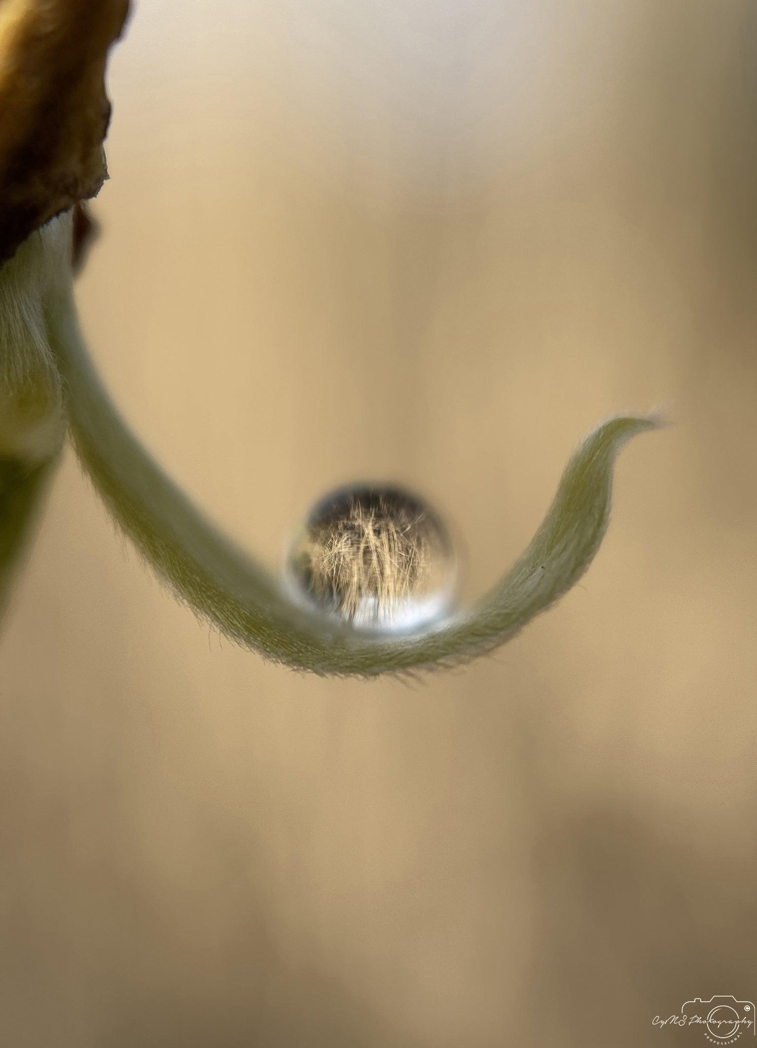 Sur une feuille de Salix babylonica , courbée telle une gondole, repose une magnifique goutte parfaitement arrondie, reflétant son environnement serein avec une clarté cristalline. Le calme du paysage rehausse sa beauté, tandis que la goutte capture la douce lumière et la tranquillité de la nature dans un instant de calme absolu.
