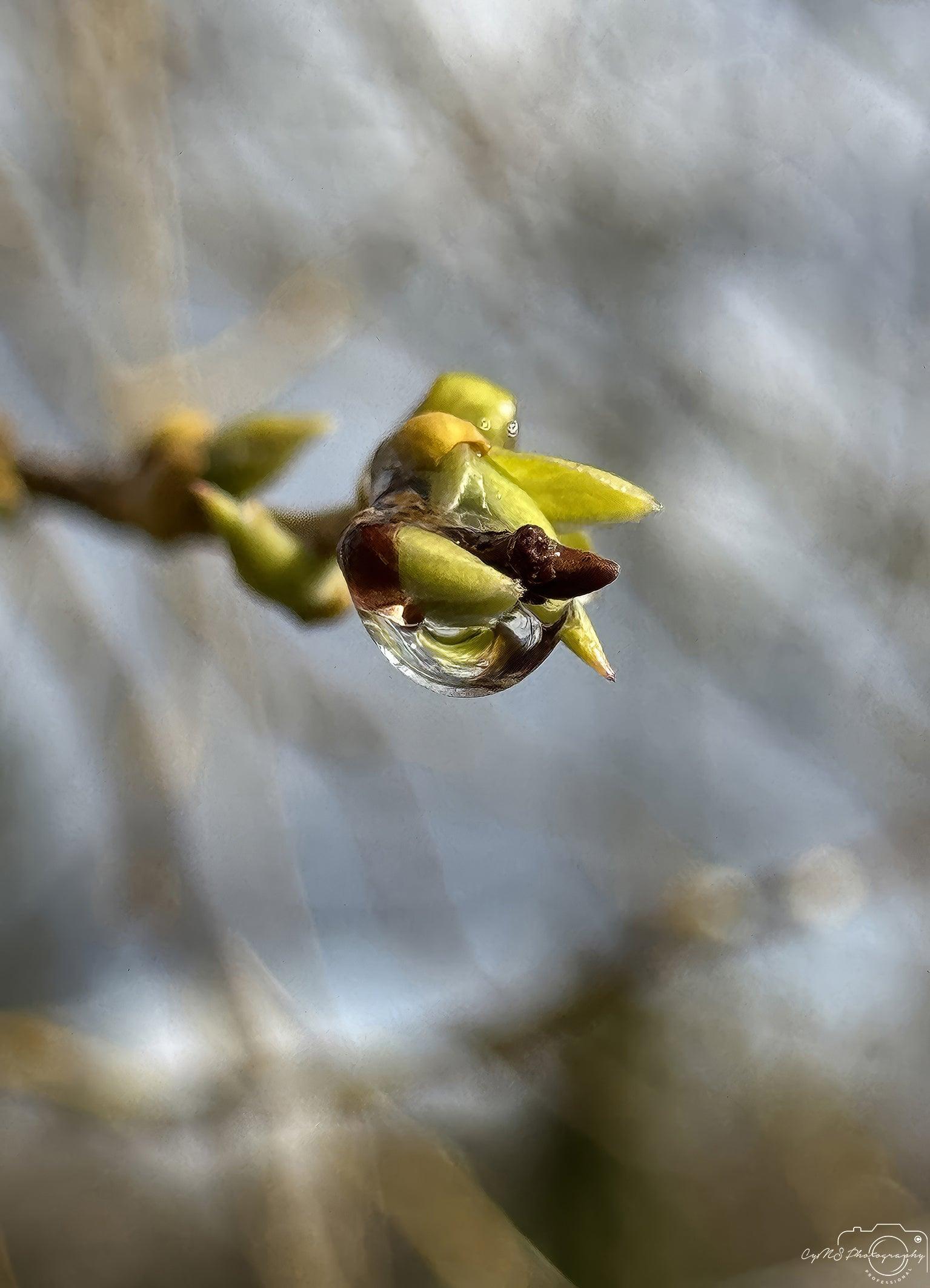 À l'extrémité d'une branche de Salix babylonica , une gouttelette s'intègre parfaitement, délicatement posée là où la plante dévoile ses bourgeons. Elle capture la douce lumière du paysage, reflétant la douce promesse d'une nouvelle vie. Entourée du vert frais des feuilles naissantes, elle symbolise un moment paisible de croissance et de renouveau dans la nature.