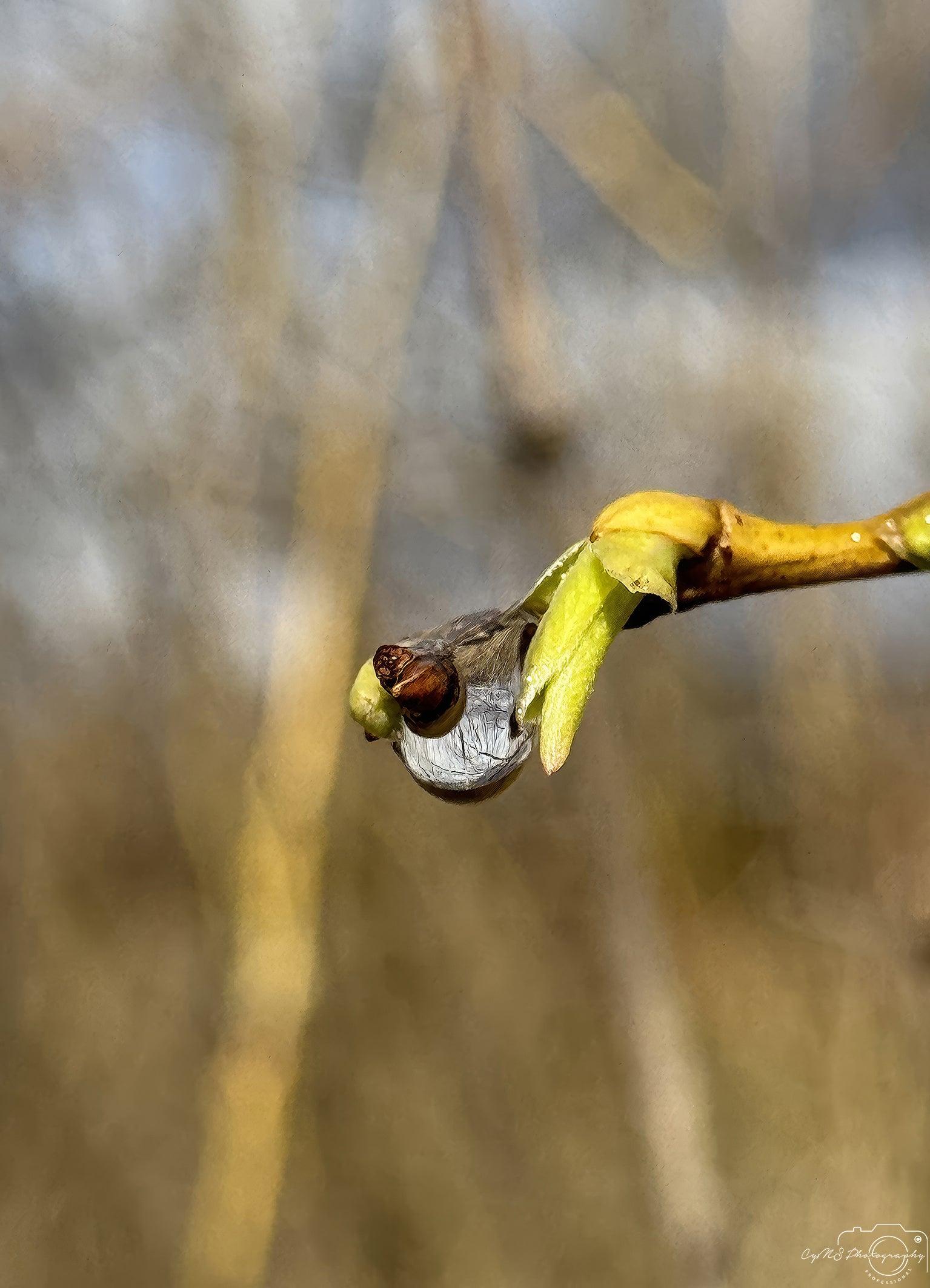 À l'extrémité d'une branche de Salix babylonica , une gouttelette s'intègre parfaitement, délicatement posée là où la plante dévoile ses bourgeons. Elle capture la douce lumière du paysage, reflétant la douce promesse d'une nouvelle vie. Entourée du vert frais des feuilles naissantes, elle symbolise un moment paisible de croissance et de renouveau dans la nature.