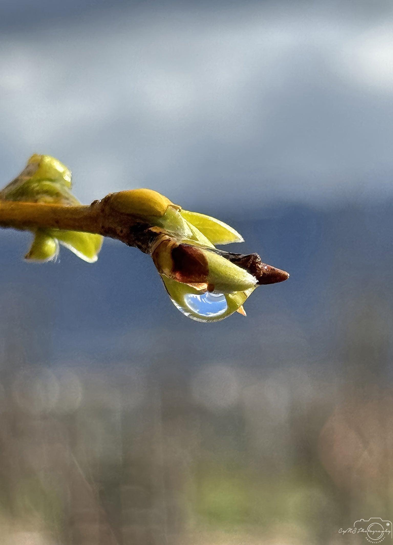 À l'extrémité d'une branche de Salix babylonica , une gouttelette s'intègre parfaitement, délicatement posée là où la plante dévoile ses bourgeons. Elle capture la douce lumière du paysage, reflétant la douce promesse d'une nouvelle vie. Entourée du vert frais des feuilles naissantes, elle symbolise un moment paisible de croissance et de renouveau dans la nature.