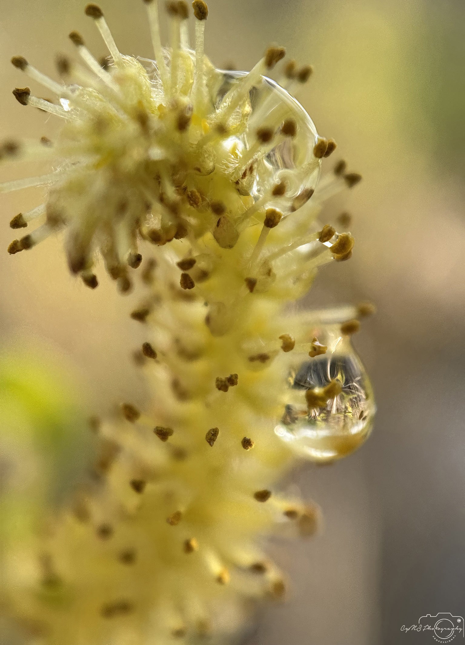 De multiples gouttes d'eau se déposent délicatement sur les pétales dorés d'une graine de saule pleureur , scintillant tels de minuscules joyaux. La lumière danse à travers leurs formes cristallines, réfractant de chaudes teintes d'ambre et de miel. Elles s'accrochent délicatement, enlaçant la texture douce de la graine, chatoyant au moindre mouvement de la brise, murmurant l'élégance tranquille de la nature avant de s'évanouir.