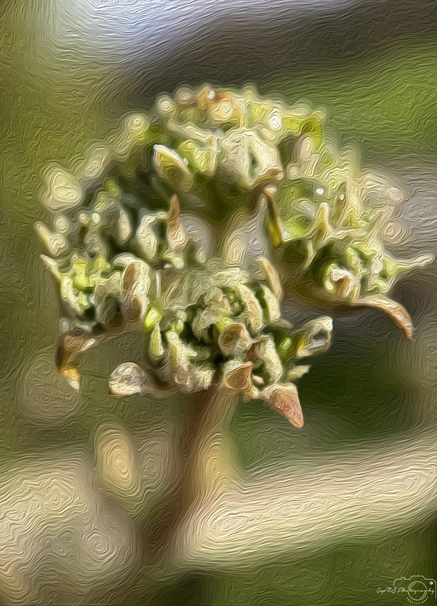 Sur cette photo, les gouttes d'eau sont à peine visibles, posées sur les délicats pétales d'un Viburnum lantana . La couleur vert pâle et vive des fleurs est envoûtante, créant une atmosphère douce et sereine. Les gouttelettes subtiles ajoutent une touche d'élégance, se fondant presque harmonieusement avec les teintes douces de la plante, rendant la scène discrètement captivante.