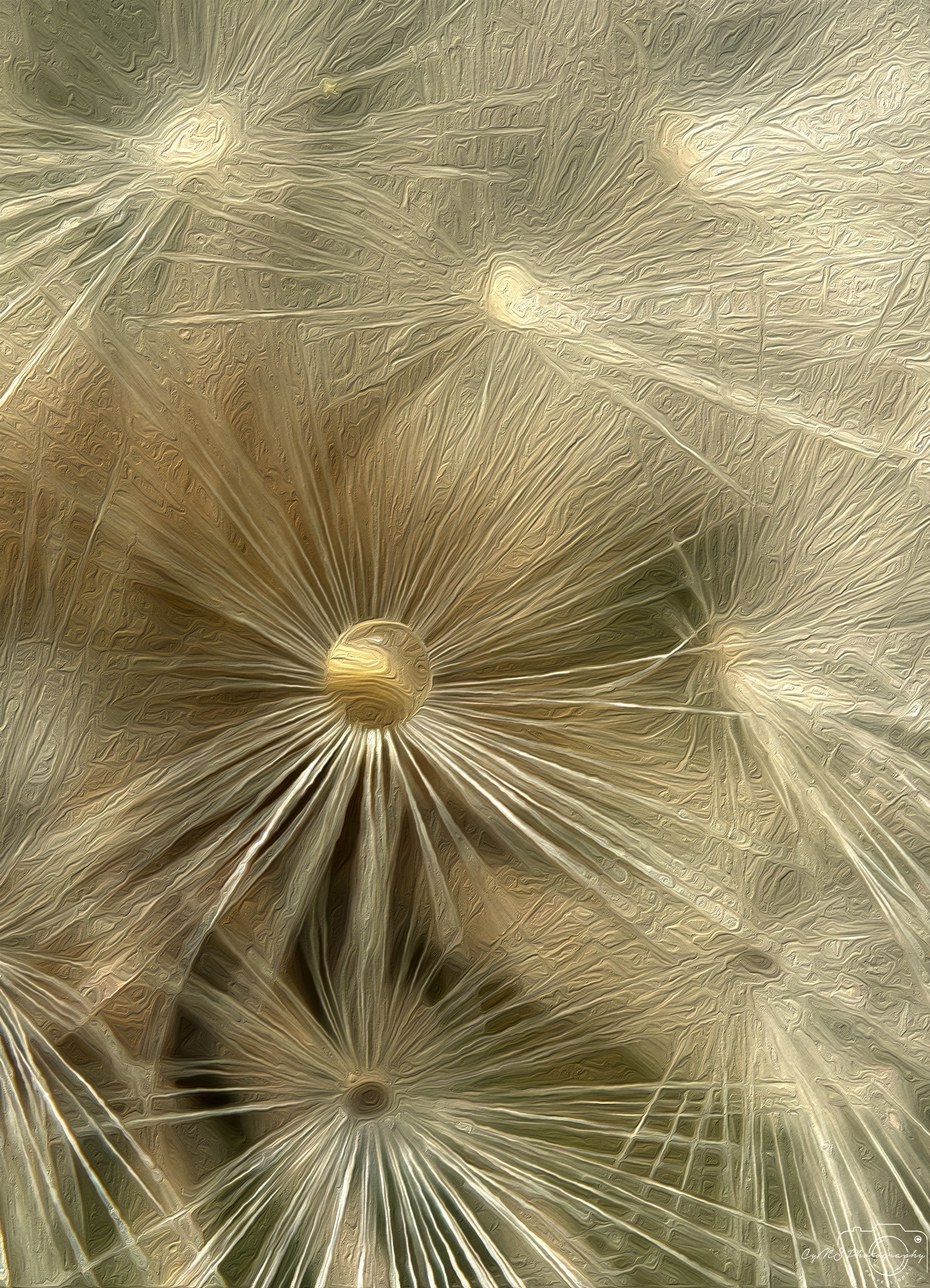 Une minuscule goutte d'eau repose délicatement sur un pissenlit , transformant la scène en un lieu éthéré. La texture douce et soyeuse des filaments du pissenlit enveloppe la goutte, donnant à l'ensemble une impression de soie. La lumière danse doucement sur la scène, créant une atmosphère envoûtante, presque onirique, où chaque détail semble suspendu dans le temps et la beauté.