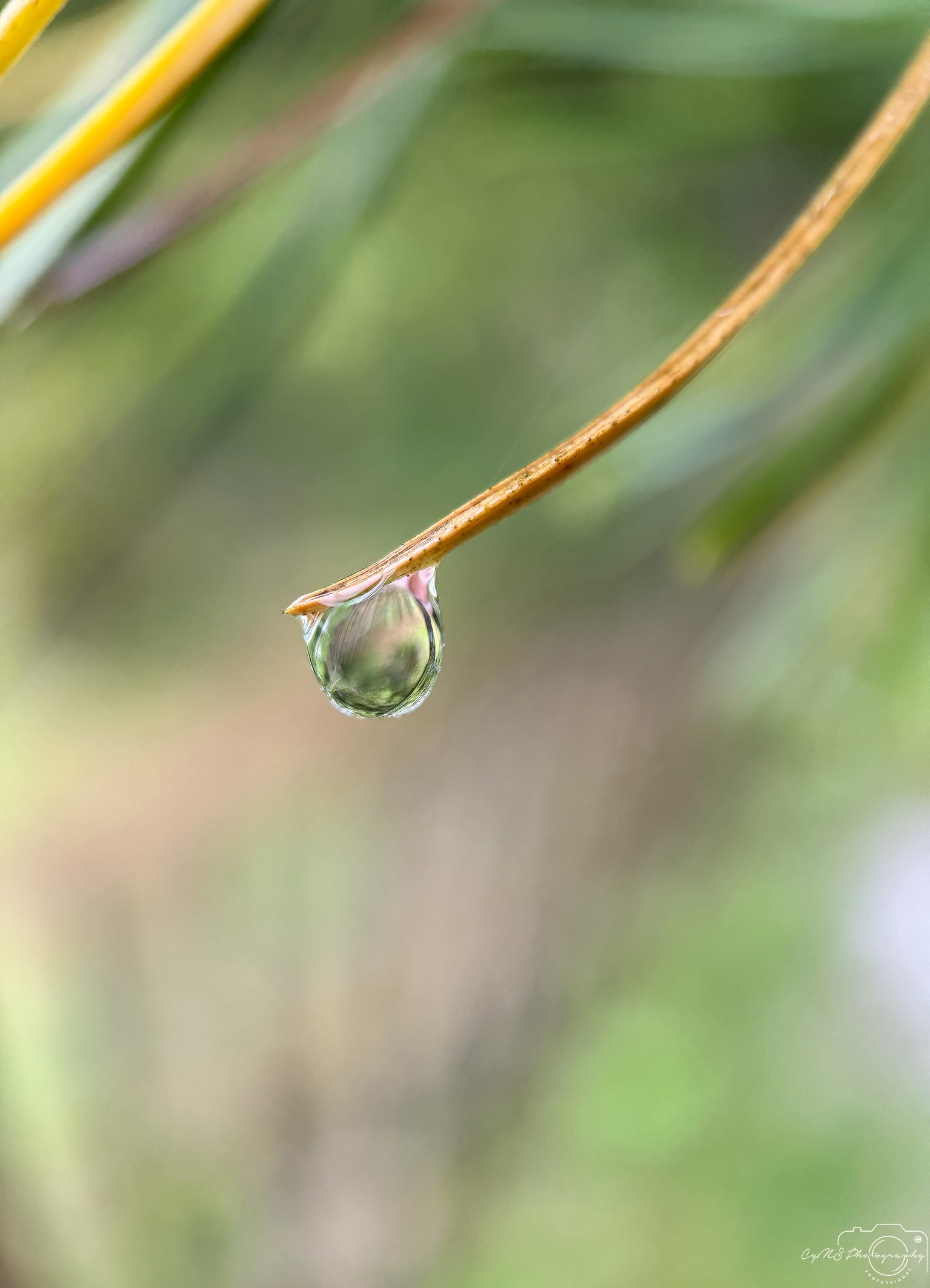 À l'extrémité d'un Pinus nigra se trouve une magnifique goutte d'eau, dont la forme ronde scintille à la lumière. La délicate goutte repose délicatement sur l'aiguille, ajoutant une touche d'élégance au vert vif du pin. Sa clarté contraste magnifiquement avec le feuillage environnant, capturant l'essence de la beauté tranquille de la nature.