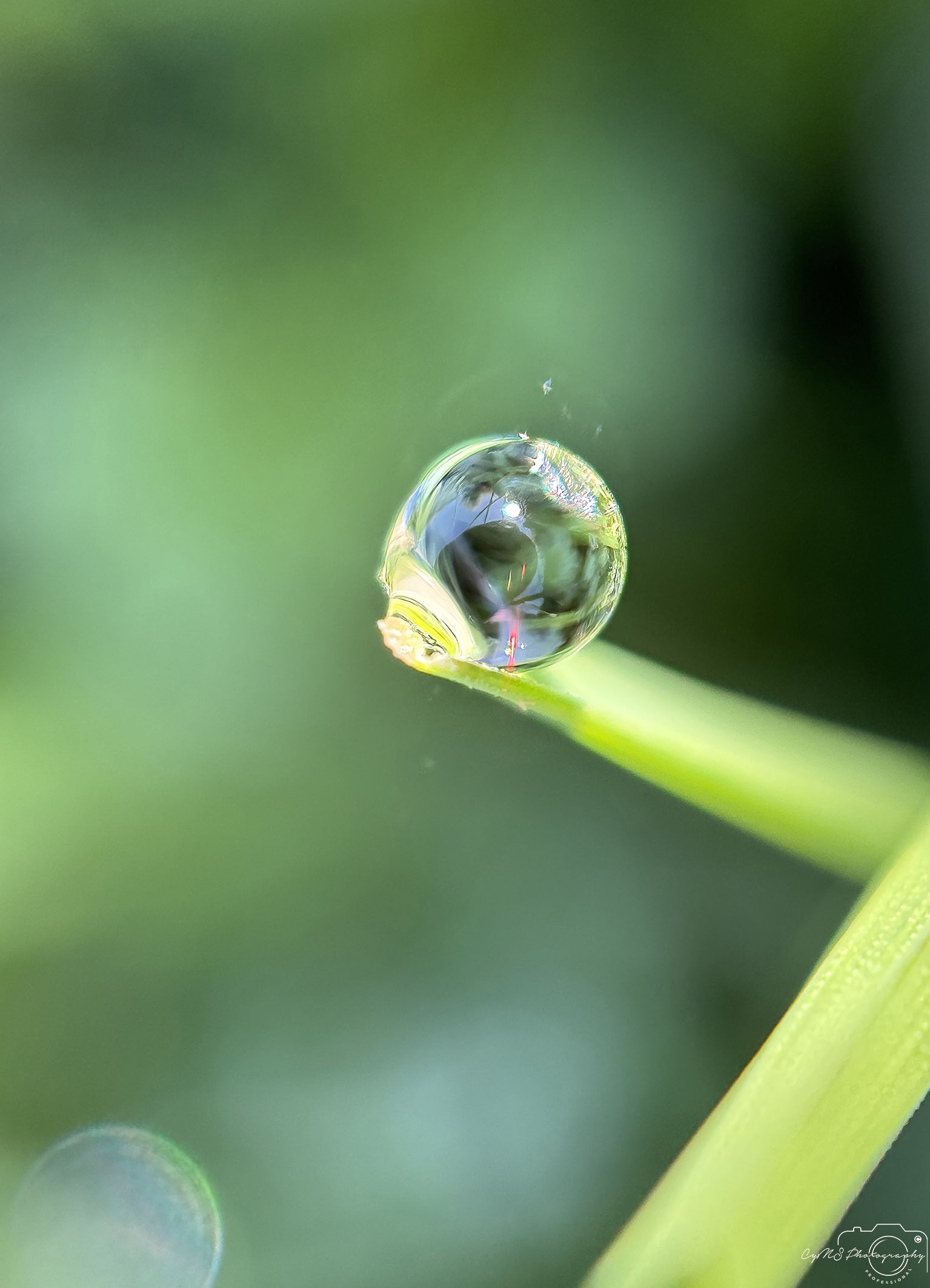 Au bout d'une brindille se trouve une goutte d'eau. Le reflet et la façon dont la goutte repose sur la brindille créent une forme qui ressemble étrangement à l'étonnante créature du film Alien . On la reconnaît facilement – du moins, le photographe l'a certainement remarquée. La forme unique de la goutte, combinée à la netteté du reflet, crée une ressemblance fascinante et étrange avec la créature emblématique.
