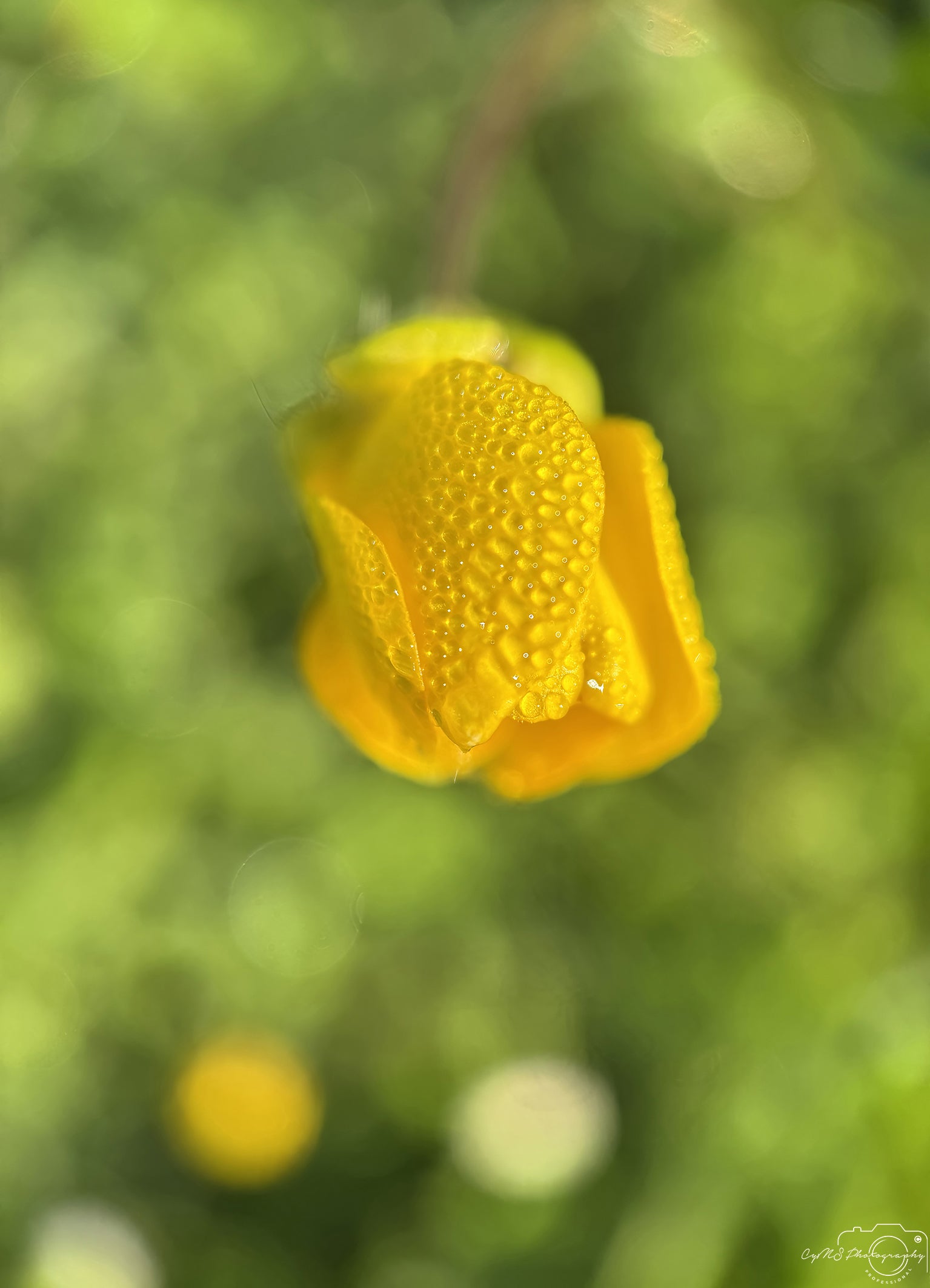 D'innombrables petites gouttes de rosée s'accrochent aux pétales radieux d'une magnifique renoncule bulbeuse , chacune captant la lumière du matin telles des perles de cristal. Le jaune vif de la fleur brille d'un éclat saisissant, comme si le soleil lui-même l'avait choisie comme miroir. L'association des gouttes de rosée et de la teinte dorée crée un spectacle d'une beauté naturelle presque surnaturelle.