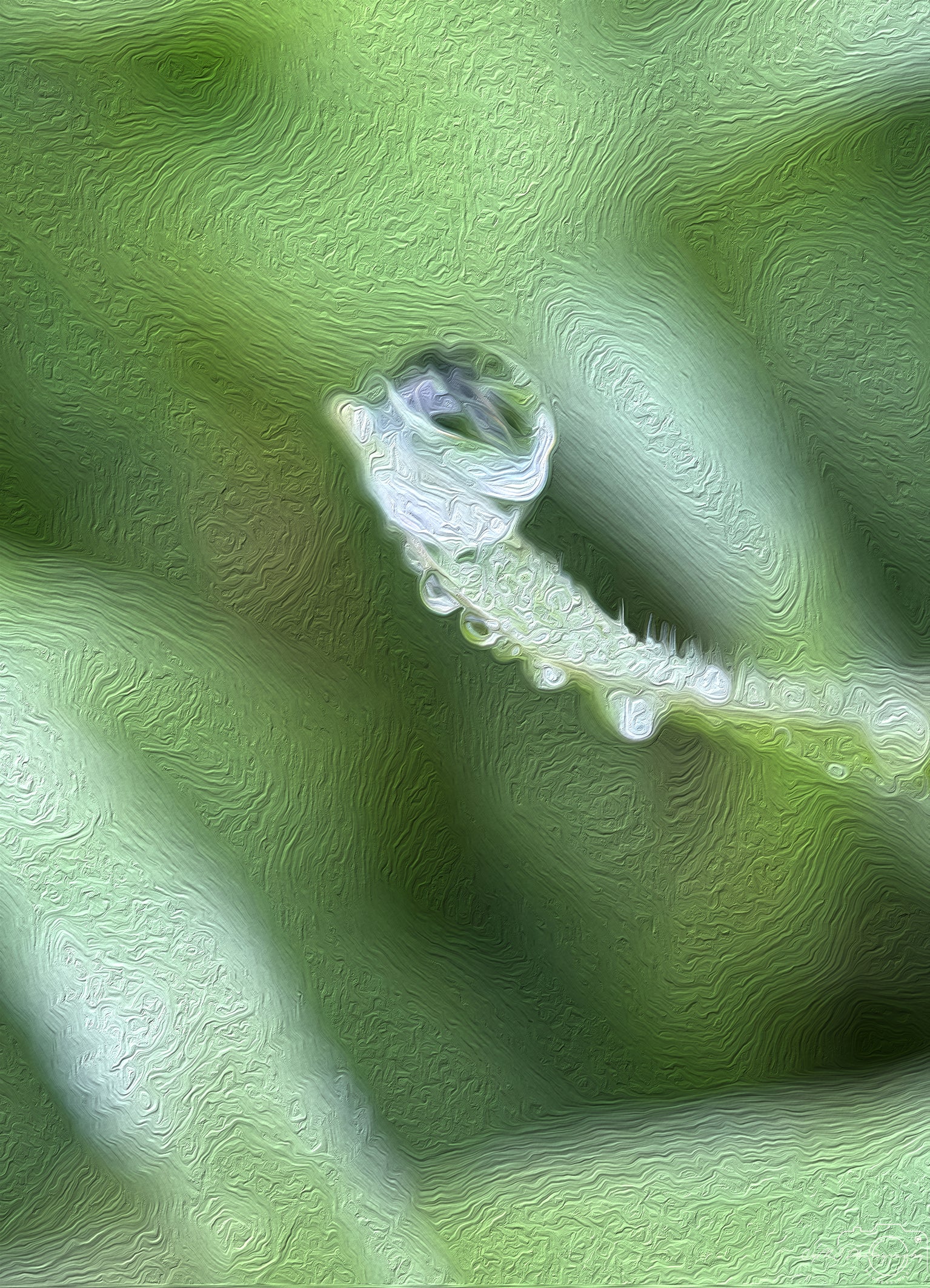 A large, delicate dew drop lies gently on top of a twig in the early morning, its smooth surface catching the faint light of dawn. The cool air holds it in perfect stillness, but its round form seems ready to take flight, as if it’s about to lift off into the quiet sky. Its soft shadow rests on the bark beneath, marking a fleeting moment before it vanishes with the first breeze of the day.