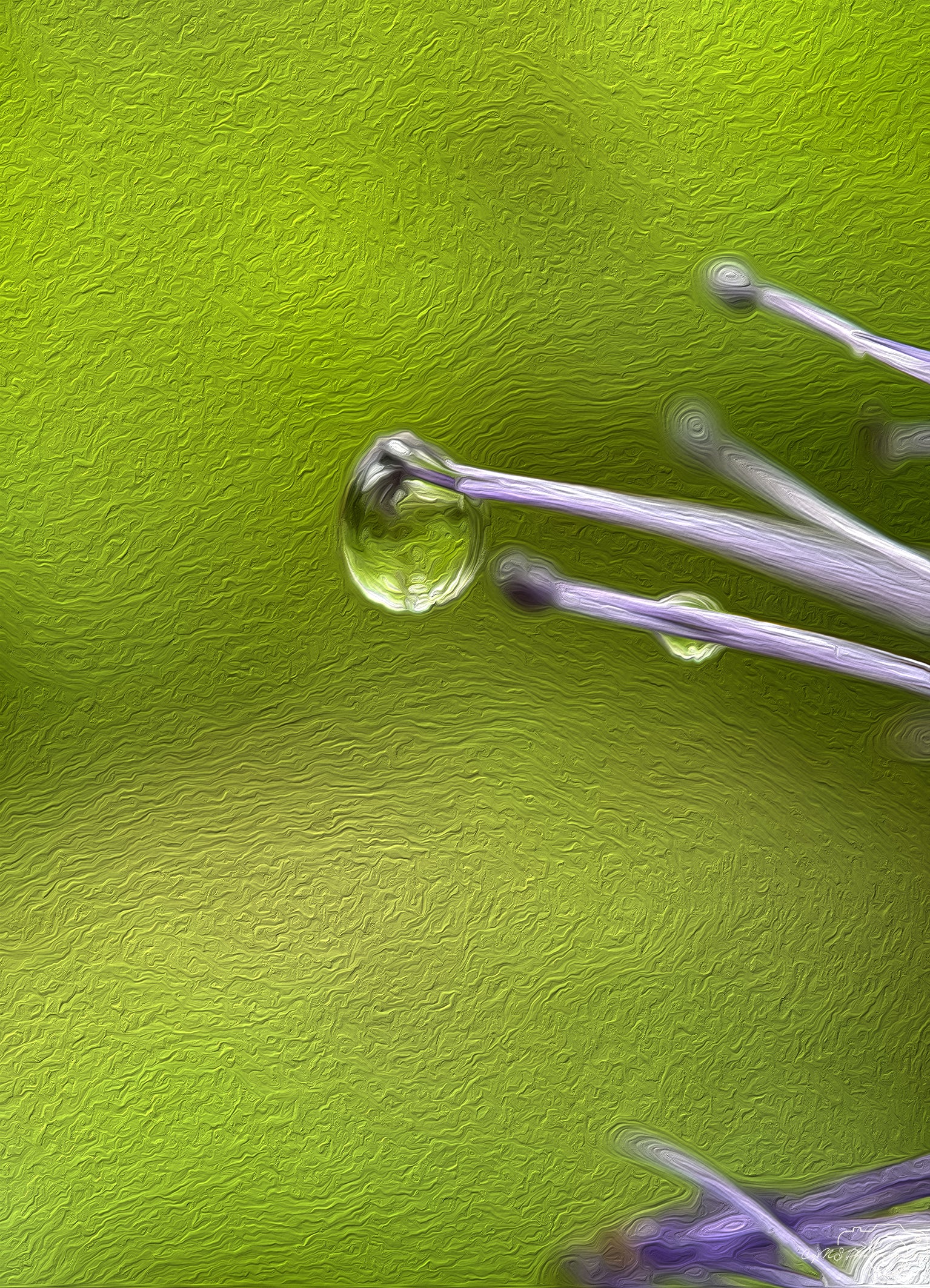 On the delicate bloom of a beautiful Phacelia tanacetifolia, a magnificent water drop rests at the very tip of its slender pistil. Perfectly poised, the drop captures the fine hairs and violet threads of the flower around it, as if cradling the bloom’s quiet breath. It gleams with a stillness that feels alive, a moment held between balance and wonder.