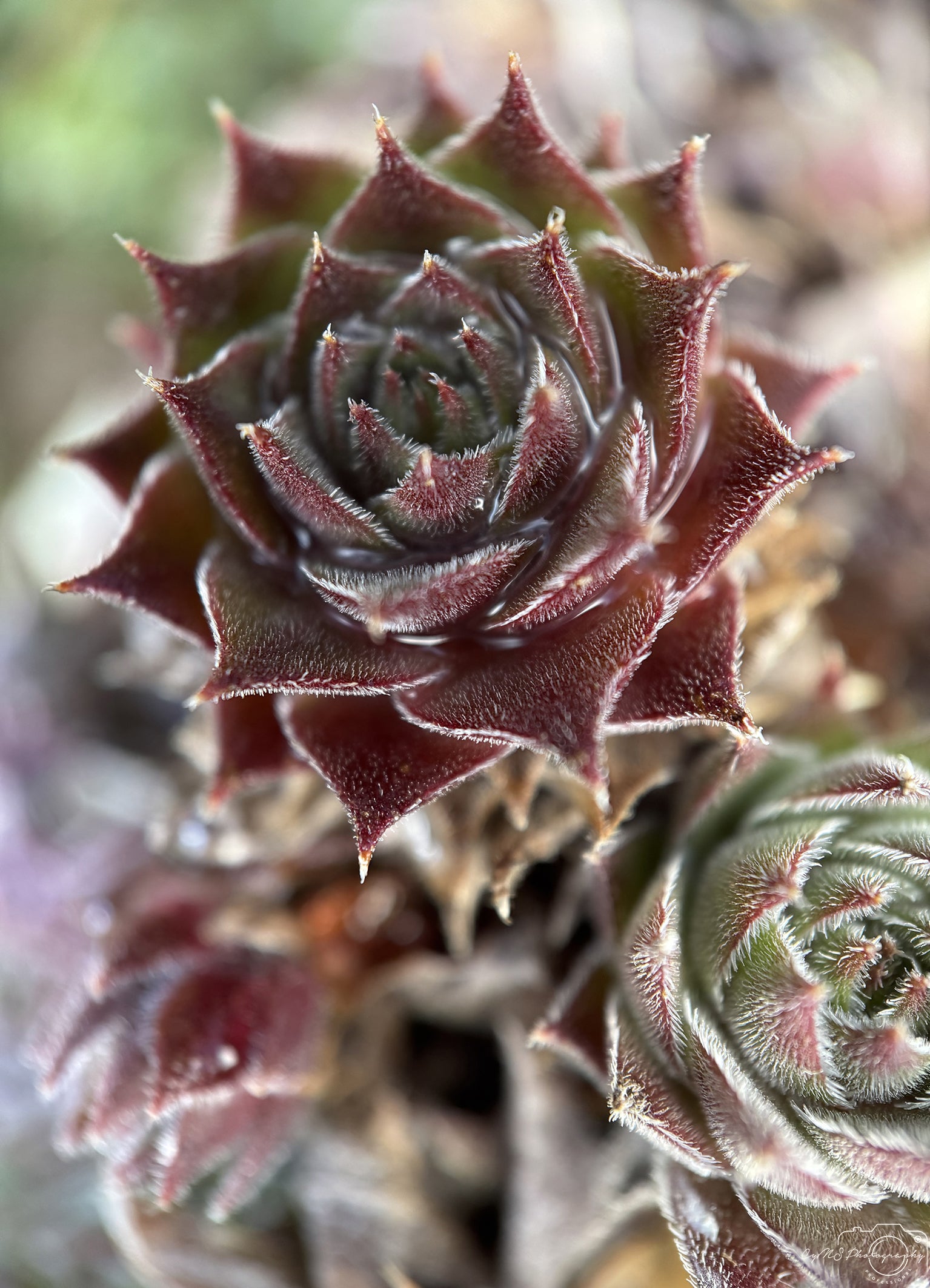 Sempervivum tectorum might resemble a cactus with its spiky, rosette-shaped leaves, but it is not. The plant’s sharp, pointed leaves form a dense, symmetrical cluster, creating a striking silhouette. Its unique structure gives it a bold, sculptural appearance, while the soft green color contrasts with its prickly edges. Though it mimics the look of a desert plant, it thrives in rocky, well-drained soils, offering a blend of resilience and natural beauty.