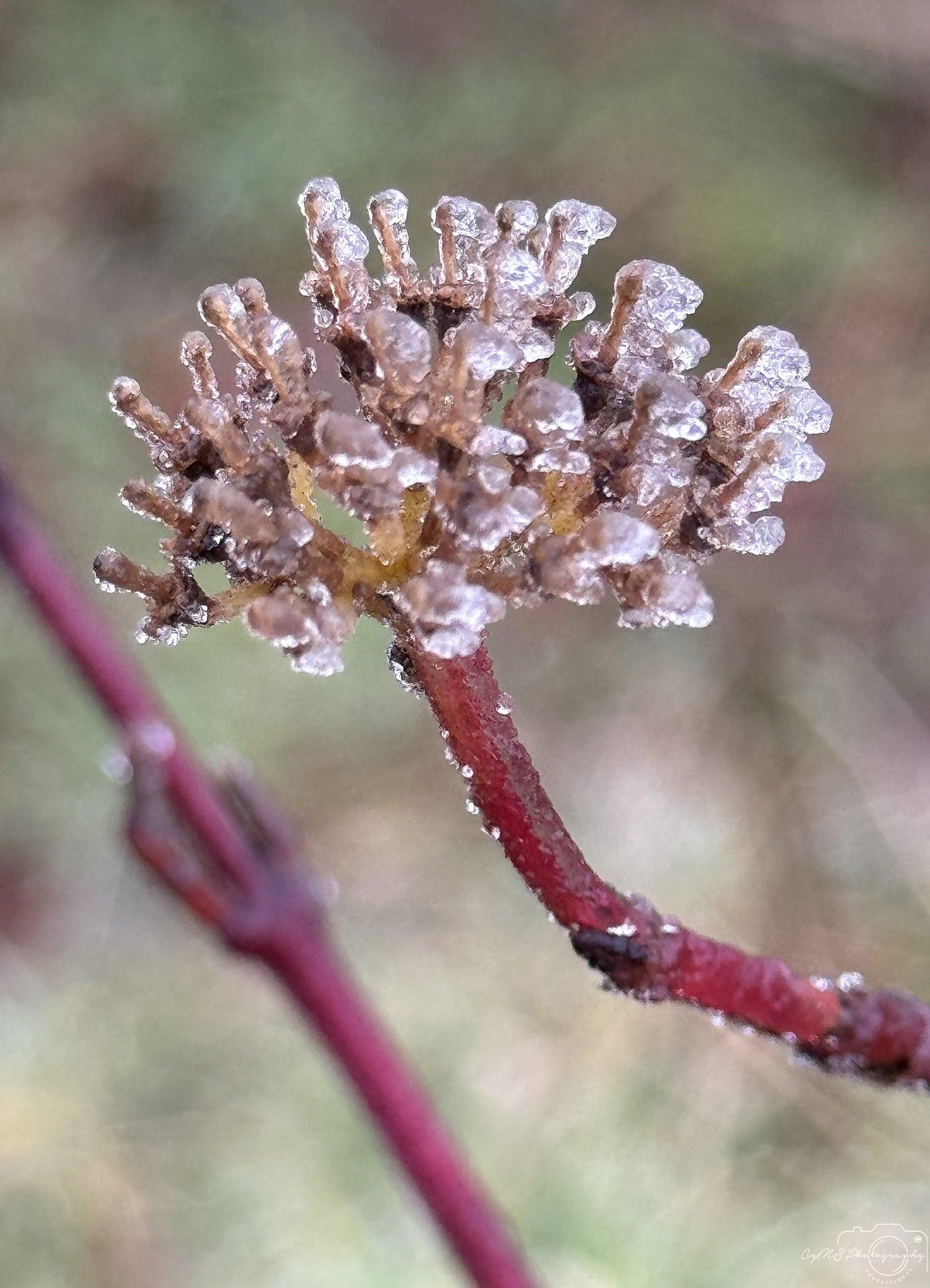 This captivating image showcases a Cornus sericea plant frozen in time, its delicate form encased in ice. Along the prolongation of the plant, a single ball-shaped cluster is visible, with ice clinging to each tip, adding a striking element to the scene. Among the frost, the vivid colors of the plant’s leaves are beautifully preserved, creating a captivating contrast against the icy backdrop. The surrounding stillness enhances the beauty of this frozen moment, where nature’s intricate details are captured in their full glory. Download the file today to bring this stunning and unique vision into your life.